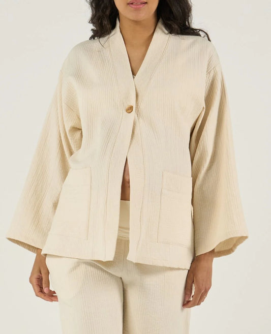 WE ARE WOVENS BODYWARMER LATTE VOOR BABY +VOLWASSEN