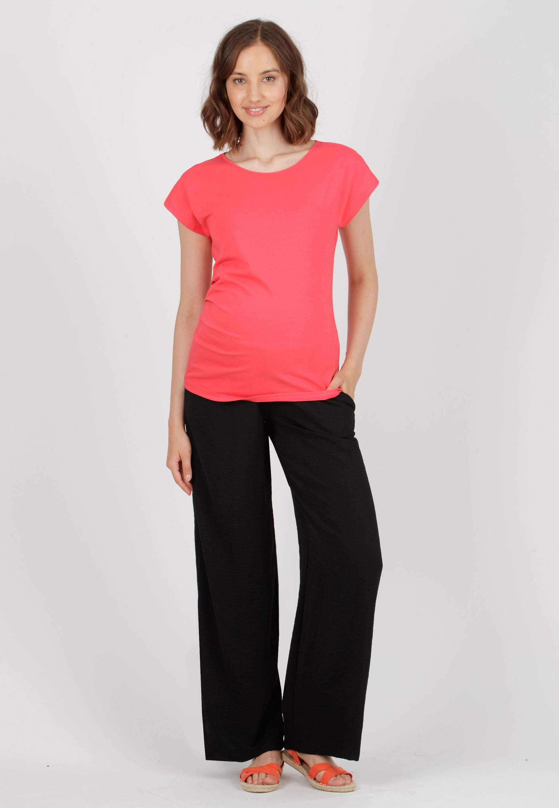 Zwangerschapsbroek van vloeiend crêpe, ideaal in het tussenseizoen en midden in de zomer. De zachte pijpen zijn modieus en uiterst comfortabel. De lage taille zorgt ervoor dat je de broek zowel tijdens als na de zwangerschap kunt gebruiken en is verstelbaar aan de achterkant dankzij een elastische band.