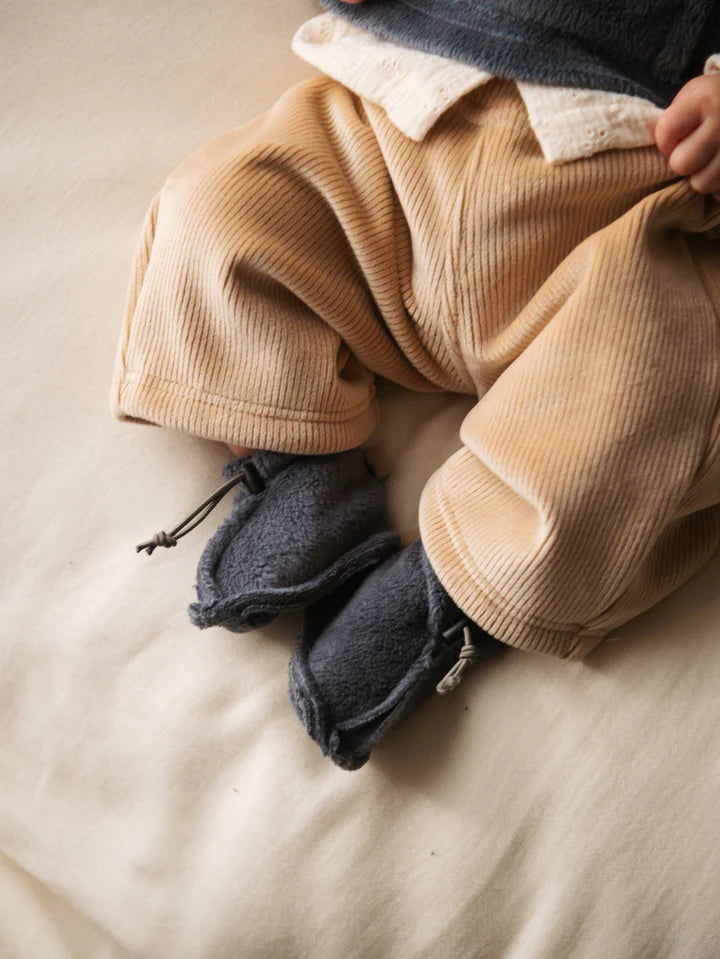 De slofjes met trekkoord zijn ontworpen om comfort en bescherming te bieden aan de voetjes van de allerkleinsten, zodat ze goed bedekt en warm blijven tijdens de koudere dagen. Dankzij het praktische trekkoordsysteem blijven ze stevig om de voetjes zitten zonder te knellen, zodat elke beweging in alle vrijheid kan worden gemaakt.