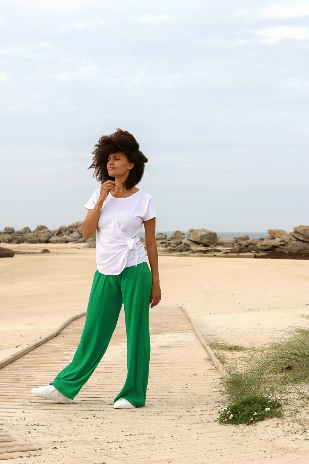 Het Capucin borstvoedings t-shirt, dat in de taille is geknoopt, is een essentieel onderdeel van de garderobe van een aanstaande of kersverse moeder. Het past zich aan aan de evolutie van uw lichaam tijdens uw zwangerschap en zelfs daarna. Het pluspunt: de verborgen borstvoedingsopening kan met één hand worden geopend.