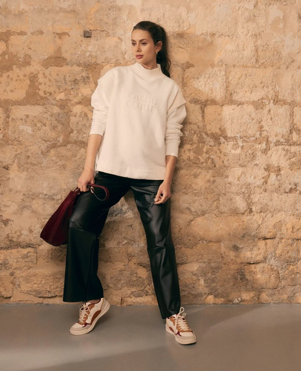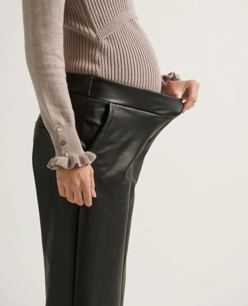 Met zijn opvallende leerlook en ultra-stretchstof combineert de Alix-broek moderniteit met comfort tijdens de zwangerschap. De zachte fleece-achtige voering zorgt voor aangename warmte, terwijl de zeer elastische tailleband onder de buik comfortabele ondersteuning biedt zonder te knellen. De broek is gemakkelijk aan te trekken en heeft een rechte snit voor een gestructureerd silhouet en een perfecte valling.