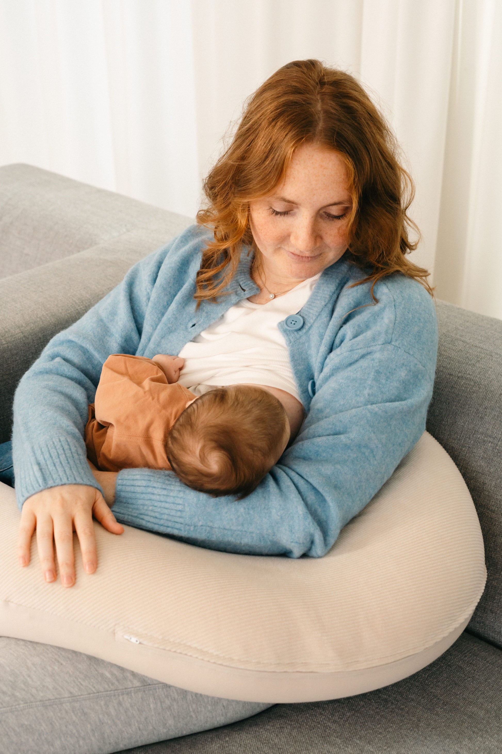 Of je nou borstvoeding of flesvoeding geeft, vaak zijn de armleuningen in huis net te laag om goed rechtop te kunnen zitten. Dan is een voedingskussen ter ondersteuning erg prettig. De Buddy is lang, zodat je deze als een hoefijzer om je heen kunt leggen. 1 Zijde voor je om je kindje op te leggen en 1 zijde achter je rug, zodat je in elke stoel of bank prettig kunt zitten.
