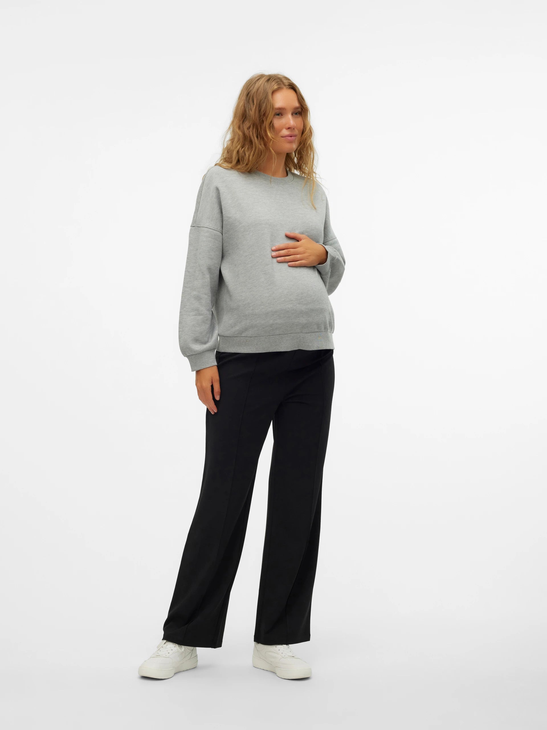 Vind de perfecte broek die in alle stadia van de zwangerschap past en die geschikt is voor zowel alledaagse activiteiten als feestelijke gelegenheden. - Producttype : Broek met wijde pijpen - Details : Buikband over de buik voor extra comfort en ondersteuning, Elastische taille - Pasvorm : Wide leg fit