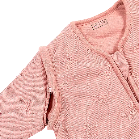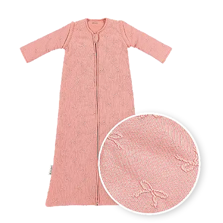 Deze gevoerde slaapzak is voorzien van afritsbare mouwen en een TOG-waarde van 2.5, ideaal voor gebruik in verschillende seizoenen. De unieke 3D applicatie in bow-dessin zorgt voor een verfijnde look, terwijl de zachte stof zorgt voor optimaal comfort. De veilige pasvorm sluit goed aan bij de hals en armpjes en voorkomt dat je kindje in de slaapzak wegzakt. Dankzij de lange, doorlopende rits aan de voorkant is verschonen en aan- of uitkleden extra makkelijk, zonder je baby te veel te storen in zijn of haar slaap.