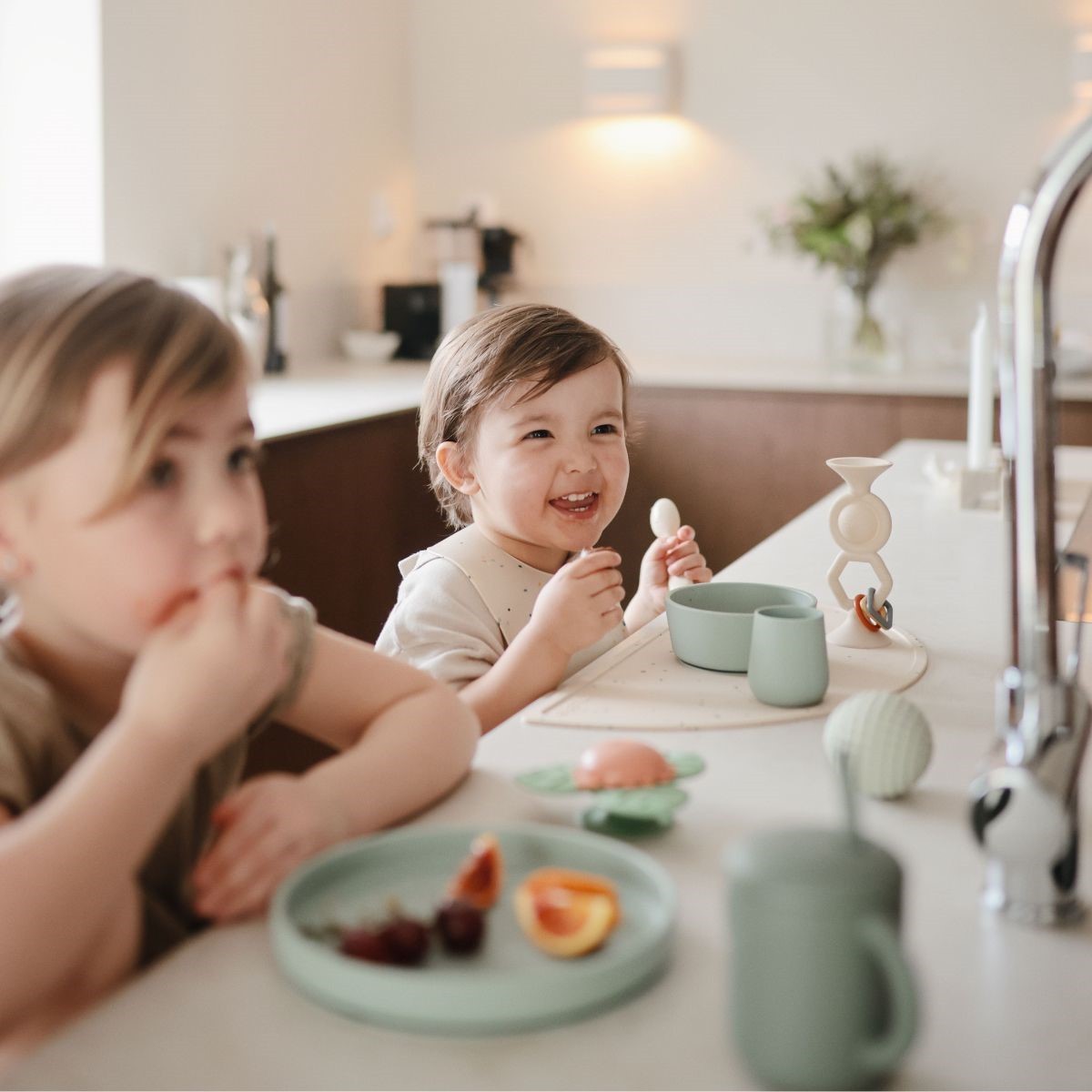 Het speeltje creëert een dynamische zintuiglijke ervaring en stimuleert verkenning en interactie. De siliconen bel kan in- en uitgedrukt worden voor zowel tactiele stimulatie als bevredigende geluiden, waardoor een extra laag van betrokkenheid aan de speeltijd wordt toegevoegd.