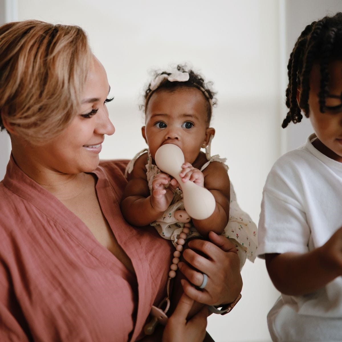 Geef kleintjes een zintuiglijke ervaring met deze babyrammelaar van Mushie.