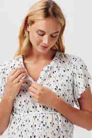 Na de zwangerschap kan je de jurk gewoon blijven dragen, ook wanneer je borstvoeding geeft. De knoopsluiting maakt het voeden van je kindje namelijk heel easy! Je hoeft alleen de bovenste knoopjes open te maken.