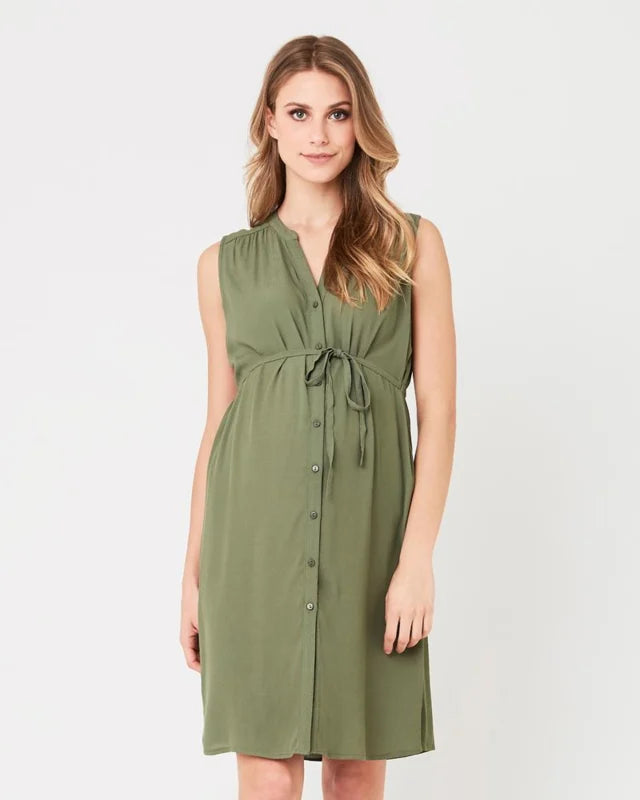 Je zult dol zijn op deze veelzijdige mouwloze overhemdjurk, die je in laagjes kunt dragen op koelere dagen of op zichzelf kunt dragen in de zomerhitte. De April Tuniekjurk is voorzien van rimpels op de rug en een zelfbinder om de taille te flatteren. Je hoeft deze jurk niet op te geven na de zwangerschap, want de functionele knoopsluiting biedt gemakkelijke toegang tot borstvoeding.